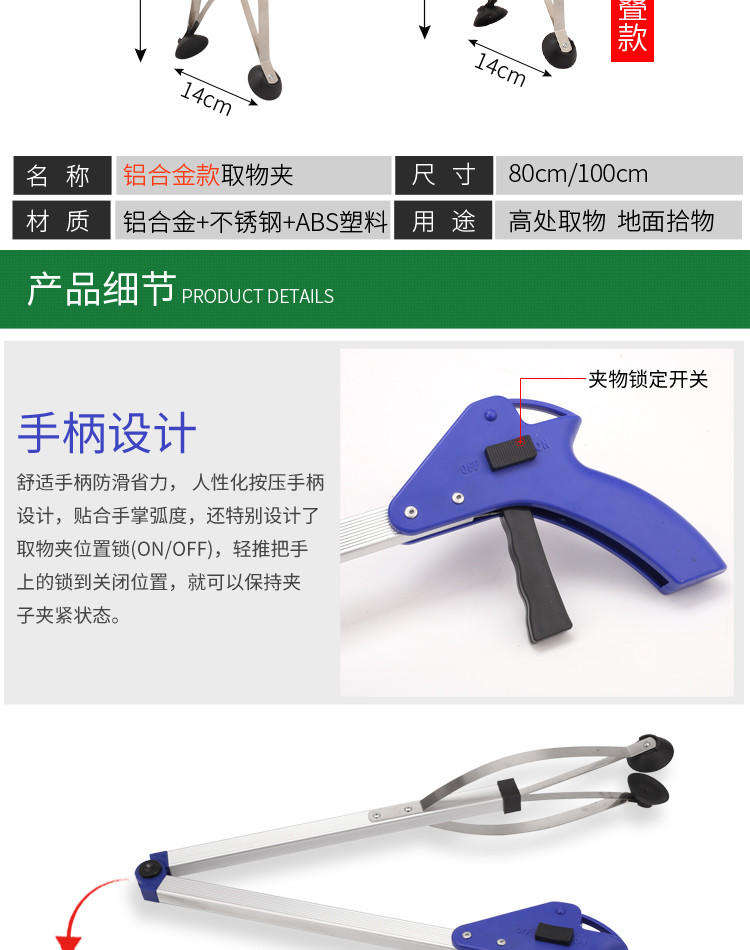 劳保佳 垃圾夹 可折叠卫生垃圾钳 景区垃圾烟头夹取物夹 多功能环卫垃圾夹 绿色(加磁) |