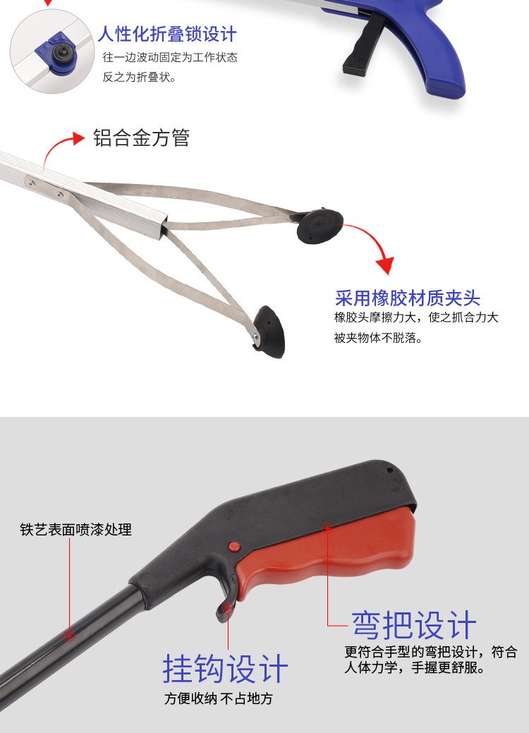 劳保佳 垃圾夹 可折叠卫生垃圾钳 景区垃圾烟头夹取物夹 多功能环卫垃圾夹 蓝色(加磁 |