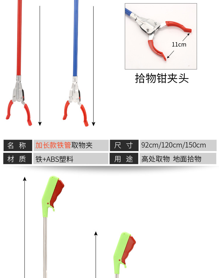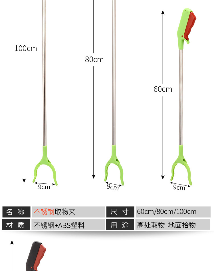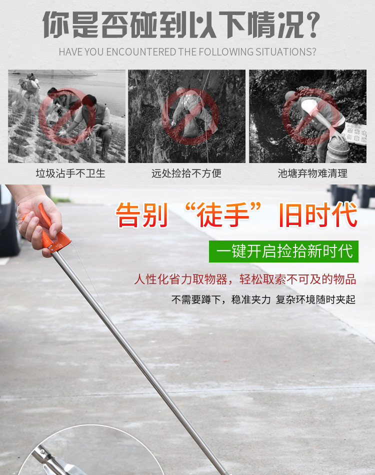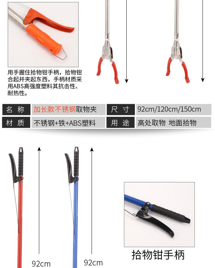 庄太太【灰色不锈钢1.2m】环卫钳加长不锈钢垃圾夹拾取物器铝合金捡垃圾钳长柄垃圾夹子 |