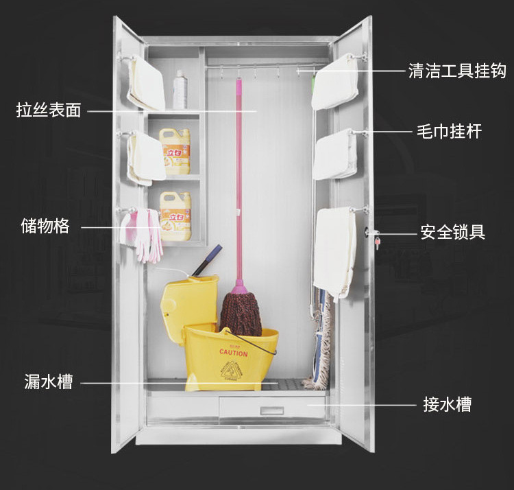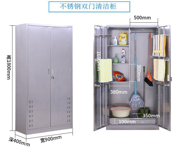 庄太太【0.6厚双柜清洁柜304】不锈钢扫帚拖把保洁柜学校教室酒店食堂清洁柜卫生工具收纳柜 |