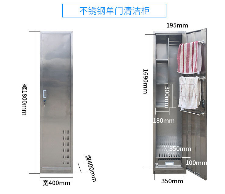 【0.8厚钢制单门】不锈钢清洁柜单双门卫生柜钢制拖把扫帚柜保洁工具收纳柜铁皮带锁 |