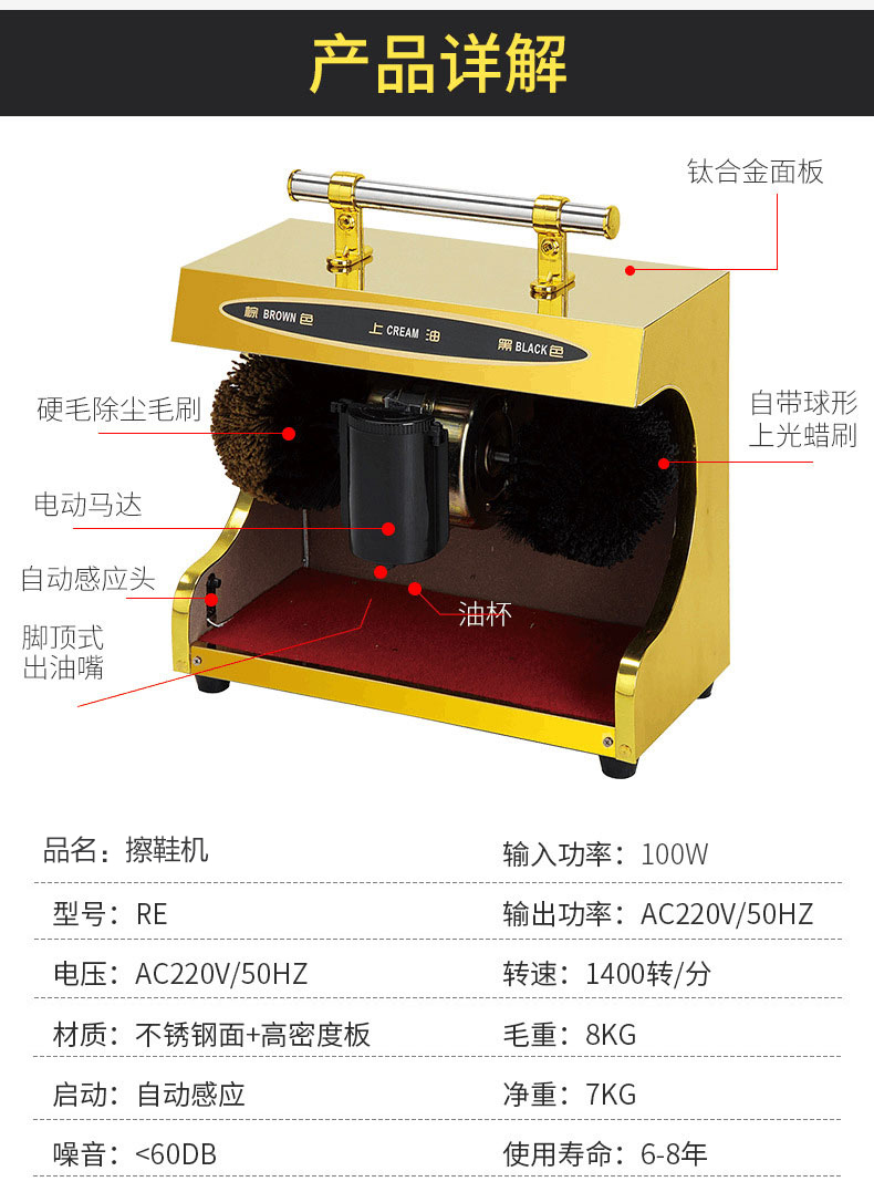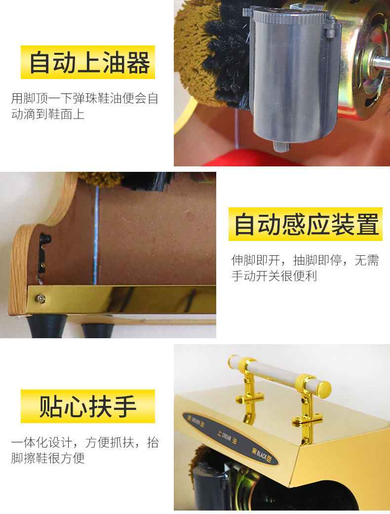 劳保佳 酒店大堂商场公共型刷鞋机 红外线擦鞋器 多功能自动感应擦鞋机 小号多功能(鞋边斜面) 金色 |