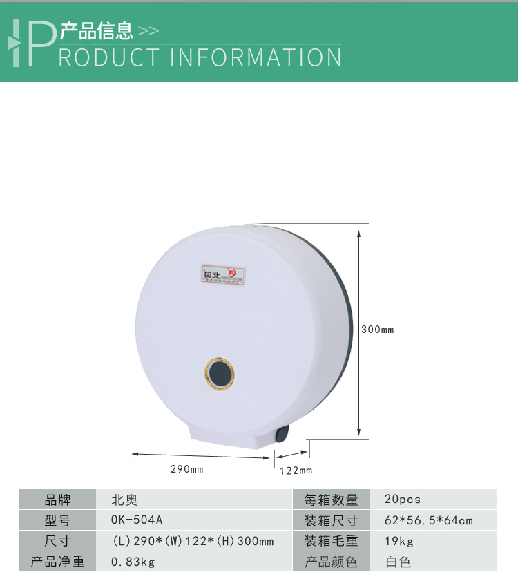 北奥(Beao)OK-524A 塑料白色酒店大擦手纸盒壁挂式厕纸架BA-2 |