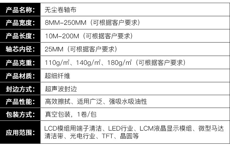 艾逊订货号:K1023800 原始型号:劳保佳 无尘擦拭布 无尘擦拭卷布 清洁 除尘 无尘布 无尘室专用卷轴布 平纹 20*50*25.4 可定制 1卷 品牌:劳保佳 品牌所属地:中国