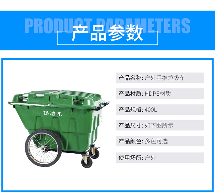 艾逊订货号:K1023978 原始型号:劳保佳 保洁清运车物业环卫手推车环卫垃圾车大号户灰色垃圾桶车 400L 灰色 品牌:劳保佳 品牌所属地:中国