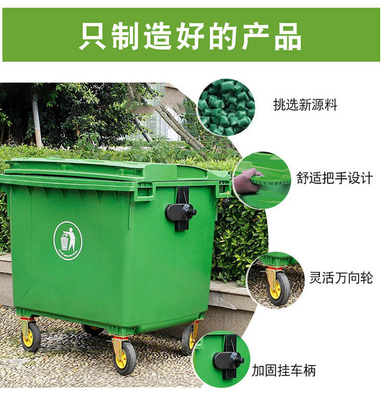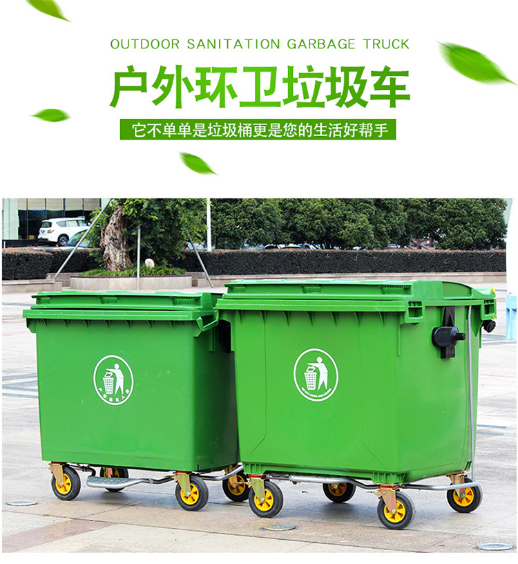 劳保佳的垃圾车劳保佳垃圾车大型环卫垃圾桶塑料大号市政垃圾车加厚垃圾车绿色660L加厚
