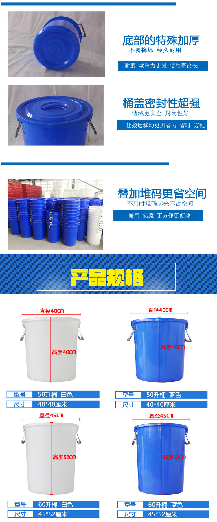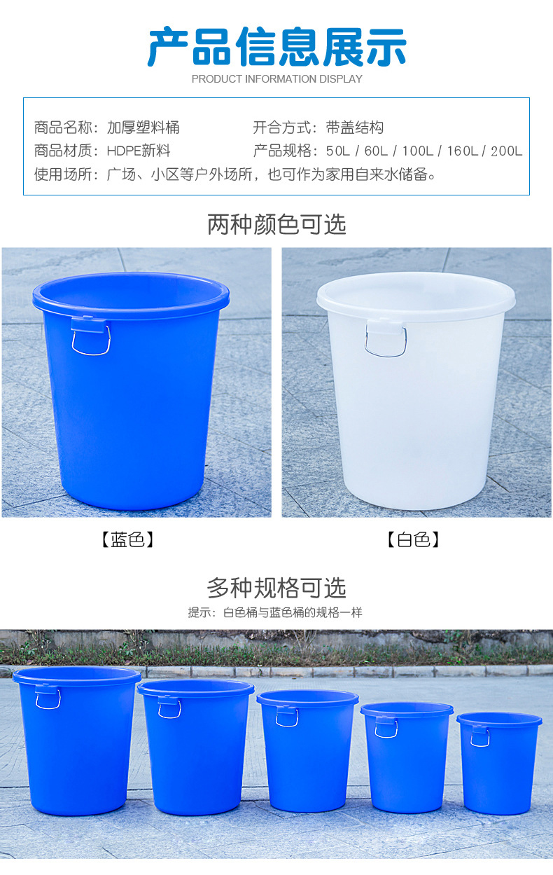劳保佳 大号塑料圆桶 圆形大容量水桶 圆形收纳桶 带盖加厚储水桶 带盖50L 蓝色 |