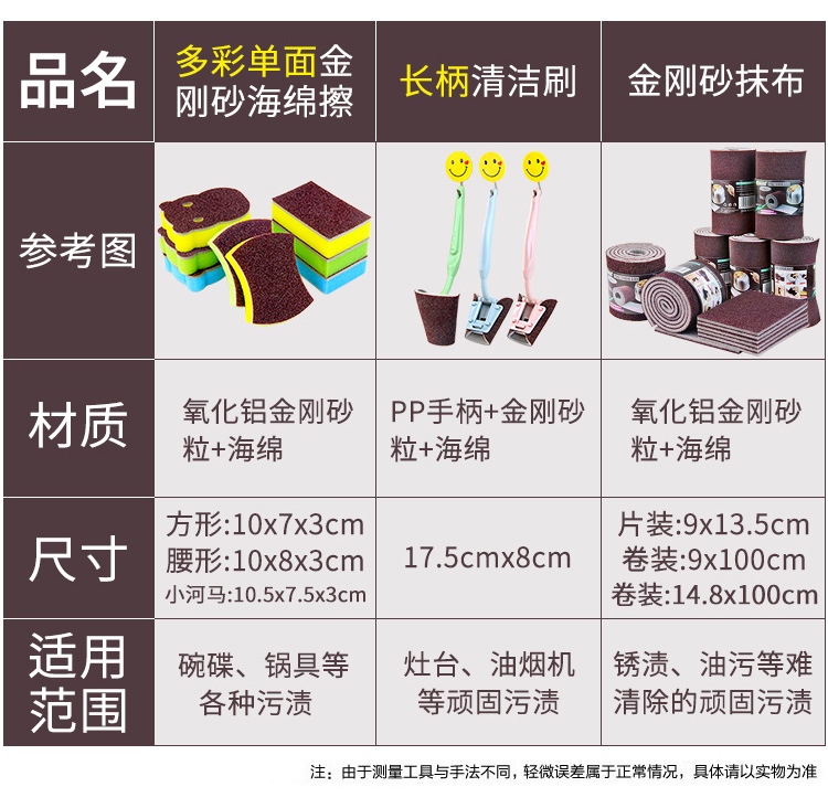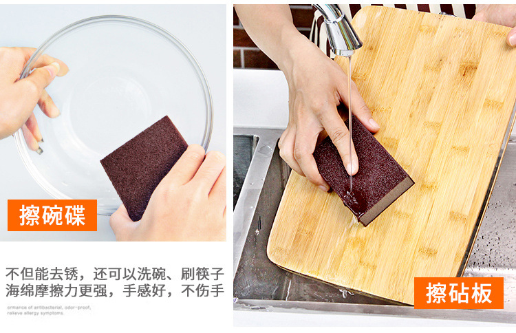 劳保佳 金刚砂海绵厨房清洁纳米魔力擦 洗碗刷锅海绵块 单面多彩方形金刚砂海绵擦(10*7*3cm)10个装 |
