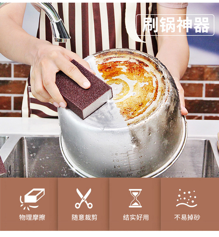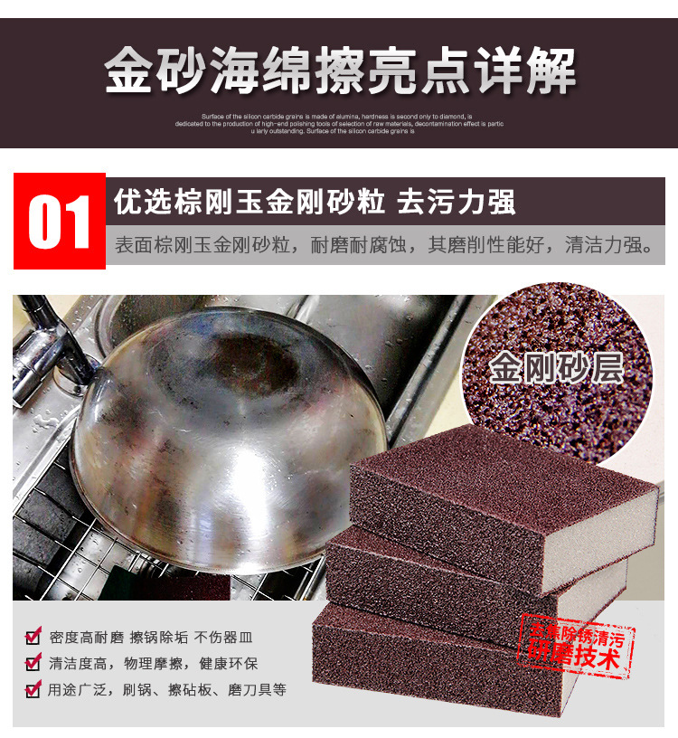 劳保佳 金刚砂海绵厨房清洁纳米魔力擦 洗碗刷锅海绵块 去锈去污海绵擦 红色高密4面砂(10*7*2.5cm)10个装 |