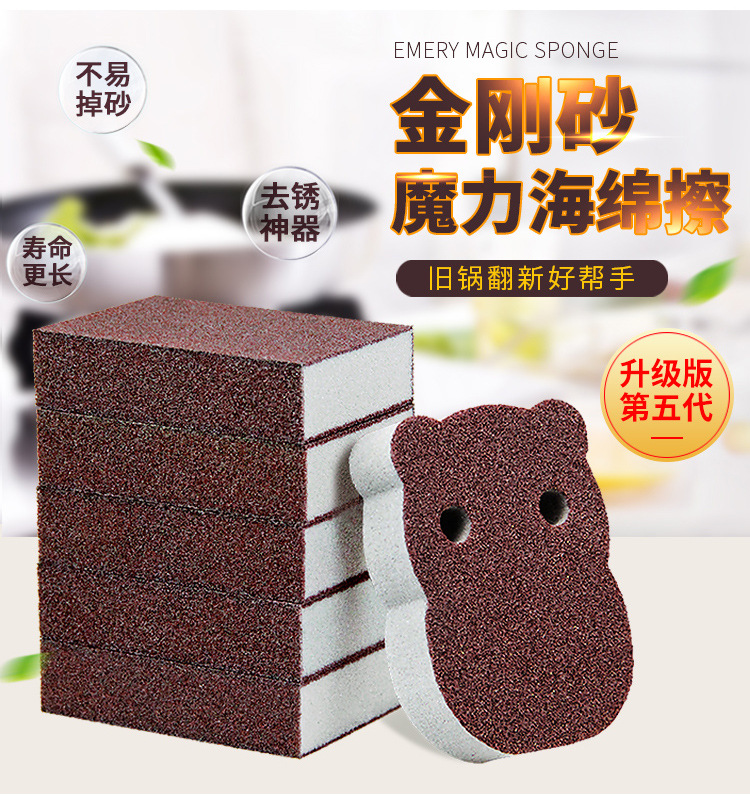 劳保佳 金刚砂海绵厨房清洁纳米魔力擦 洗碗刷锅海绵块 单面多彩腰形金刚砂海绵擦(10*8*3cm)10个装 |