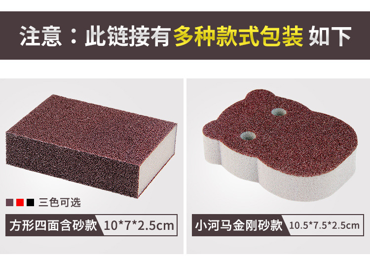 劳保佳 金刚砂海绵厨房清洁纳米魔力擦 洗碗刷锅海绵块 单面多彩小河马金刚砂海绵擦(10.5*7.5*3cm)10个装 |