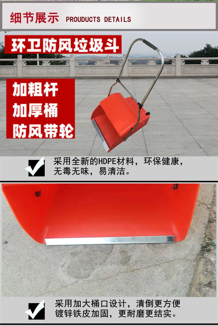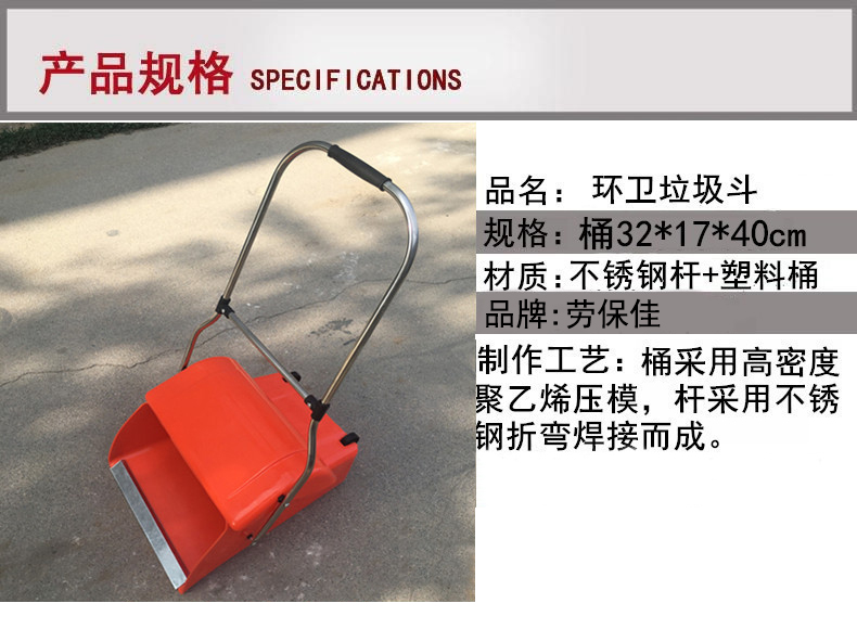 劳保佳的垃圾桶劳保佳环卫防风垃圾斗垃圾铲簸箕不锈钢杆加厚塑料垃圾斗垃圾收集器