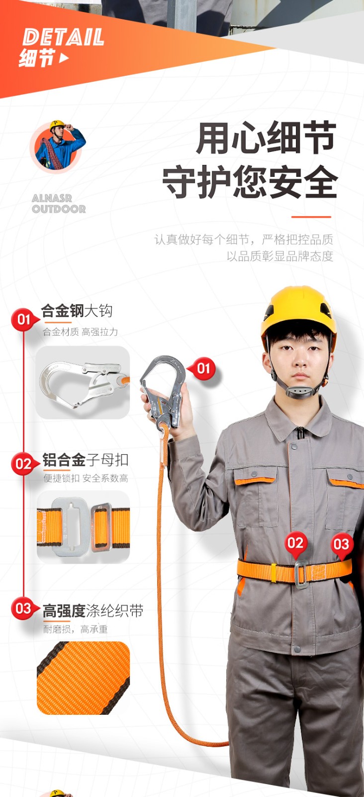 AL-NASR /阿尔纳斯 电工全身安全带 高空作业建筑工地施工防坠落安全绳 五点欧式保险带全背 普通款-钢大勾 |