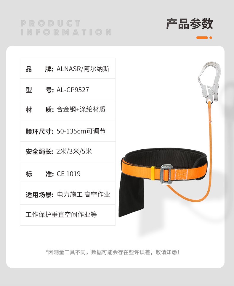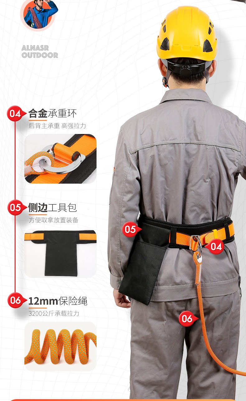 AL-NASR /阿尔纳斯 电工全身安全带 高空作业建筑工地施工防坠落安全绳 五点欧式保险带全背 普通款无勾 |