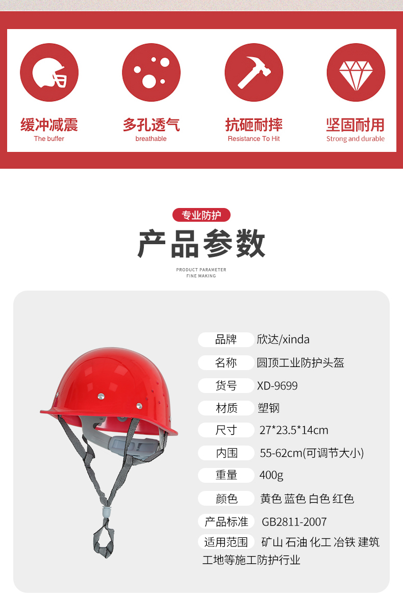 AL-NASR/阿尔纳斯 ABS安全头盔 工地防砸安全头盔 工作劳保防护V型卷边工业防护头盔 红色 |