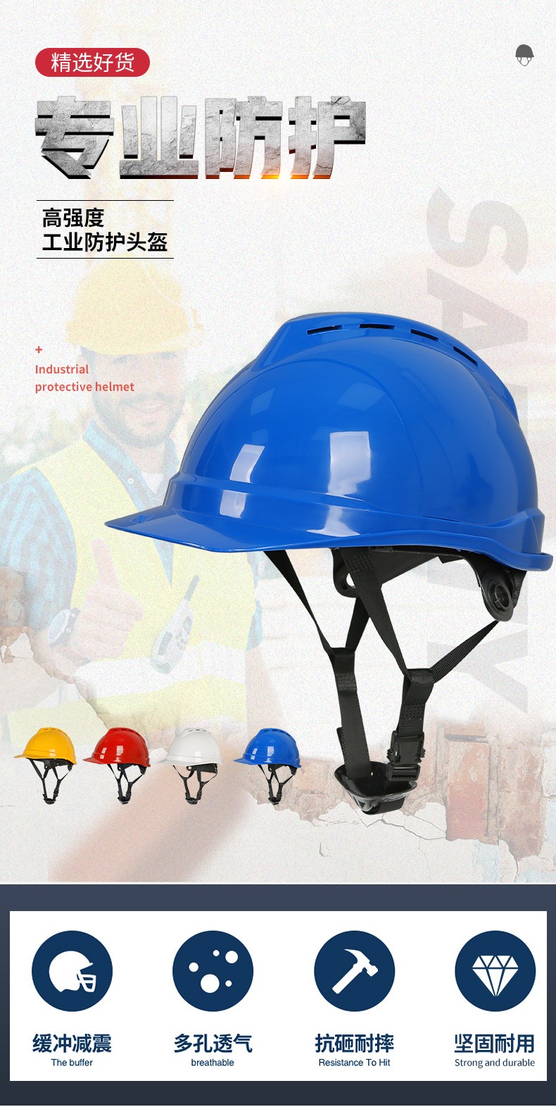 AL-NASR/阿尔纳斯 ABS安全头盔 工地防砸安全头盔 工作劳保防护V型卷边工业防护头盔 蓝色 |