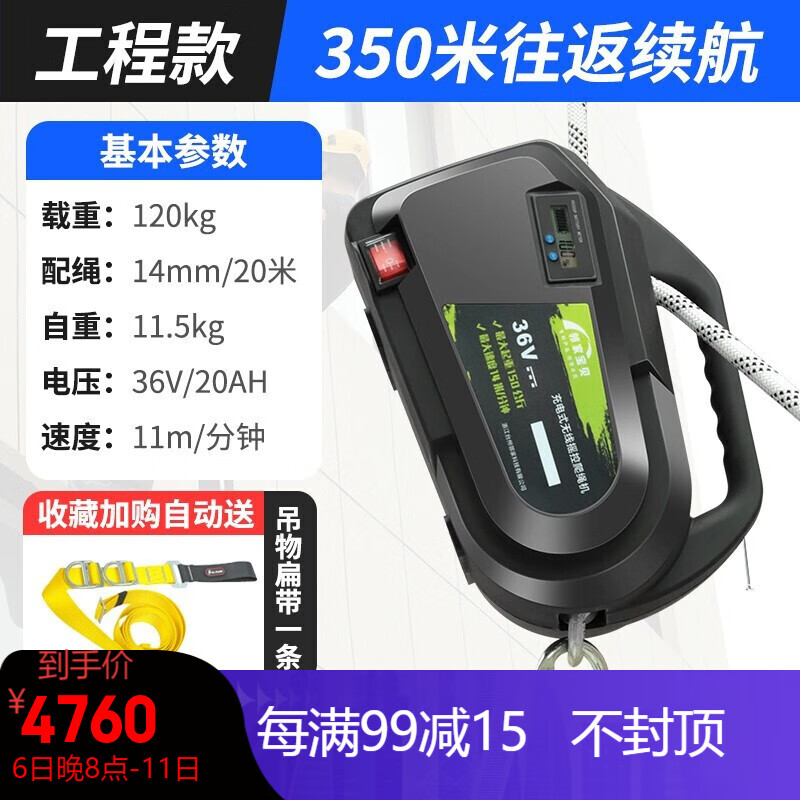 AL-NASR/阿尔纳斯 自动爬绳机电动上升器充电式锂电葫芦便携无线遥控小型装吊机 工程款 11米/分钟 续航350米往返 |