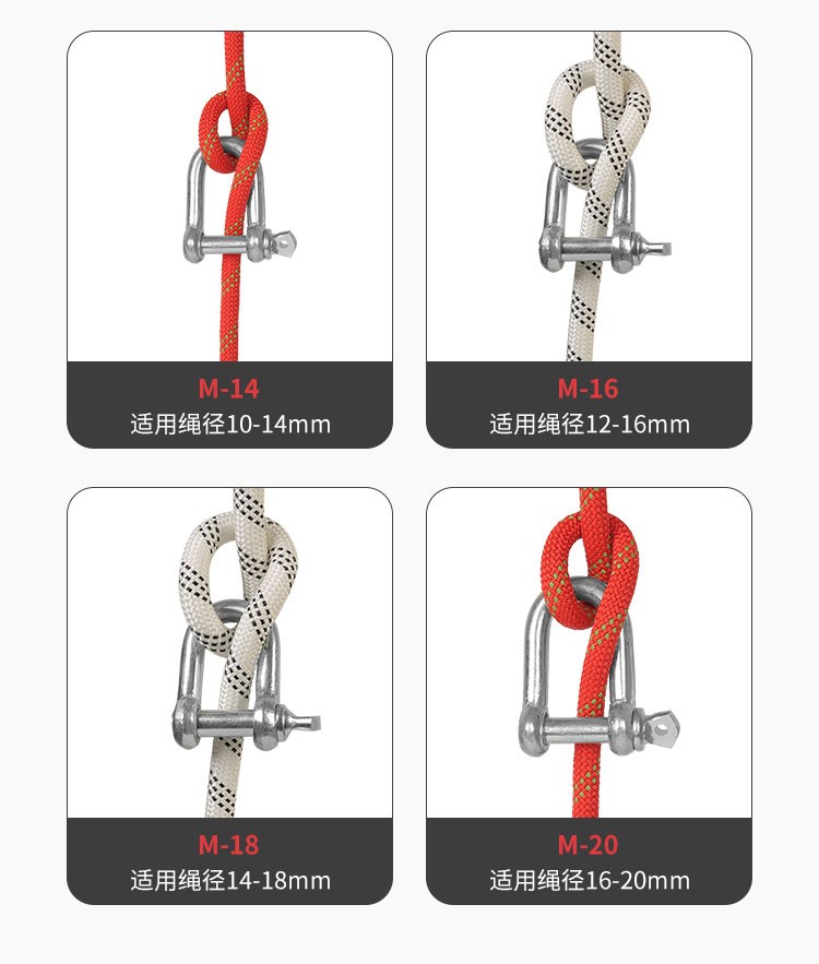 阿尔纳斯 u型起重快卸扣锁扣国标不锈钢d型扣高空作业安全绳挂钩缓降器马蹄扣 M14 |