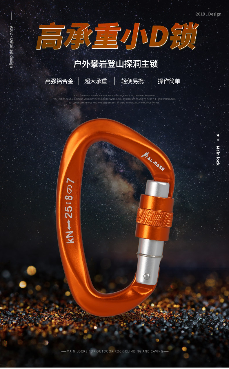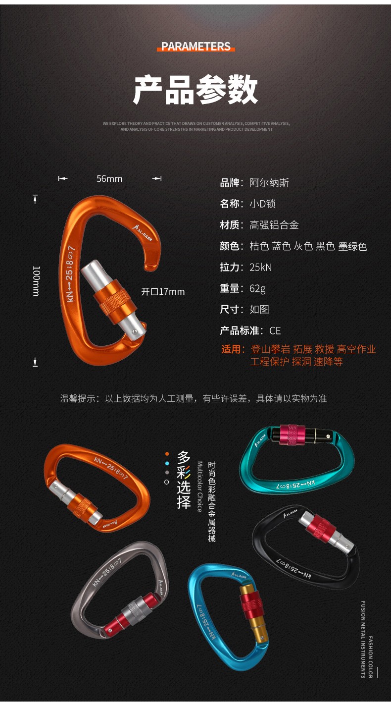 阿尔纳斯D型自动主锁攀岩锁登山扣承重主扣户外攀登装备安全扣 桔色 丝扣主锁 |