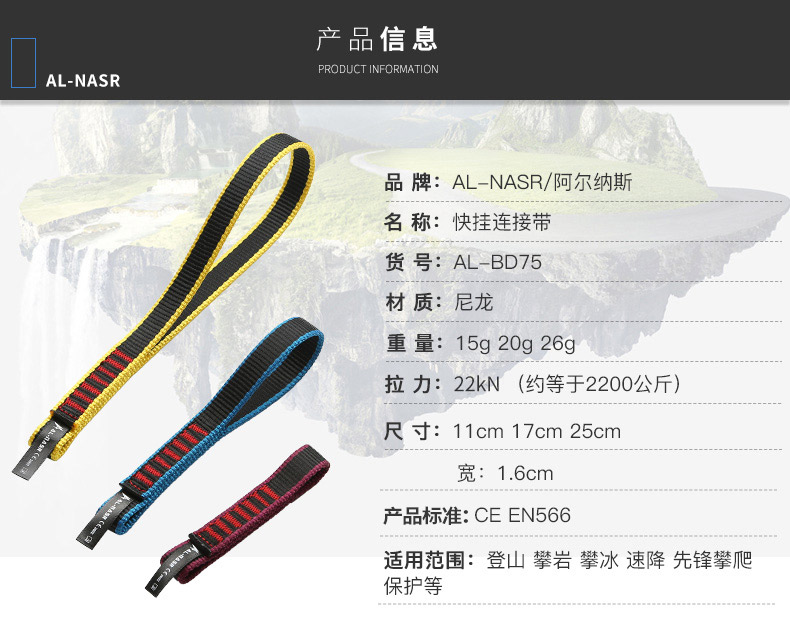 阿尔纳斯快挂连接带快挂扁带户外攀岩保护装备尼龙快挂扁带连接带短扁带 25厘米 |