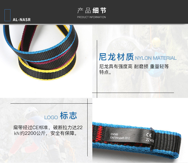 阿尔纳斯 攀岩快挂连接带尼龙短扁带攀登扁带环先锋攀登保护装备 蓝色25cm |