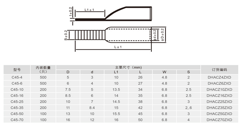 德力西DELIXI C45-70mm2插针 镀锡,DHACZ70ZXD,100只/包 |