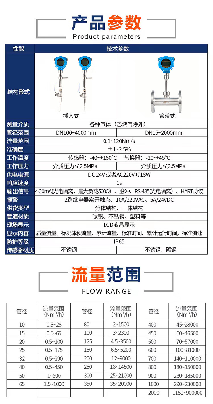 匡建仪表(CONJANT)TS-09 热式气体质量流量计 测压缩空气氮气天然气带4-20ma输出 DN100法兰一体式 |