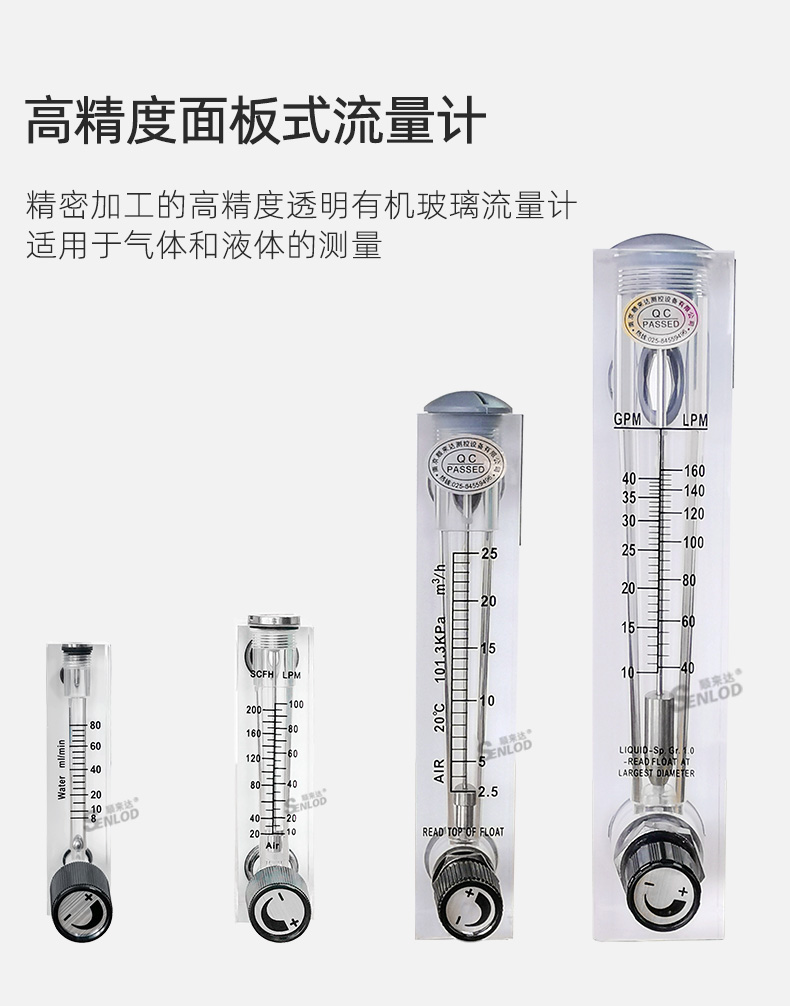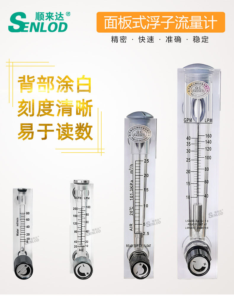 顺来达 面板式转子流量计 有机玻璃流量计 面板式气体液体流量计 LZM-25T 液体40-160 L/min |