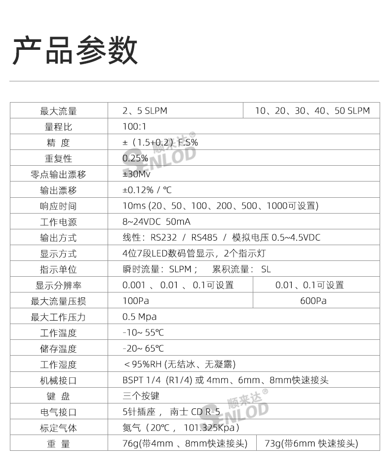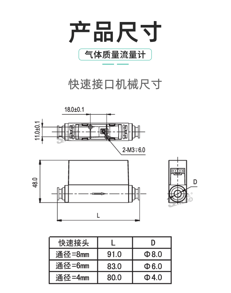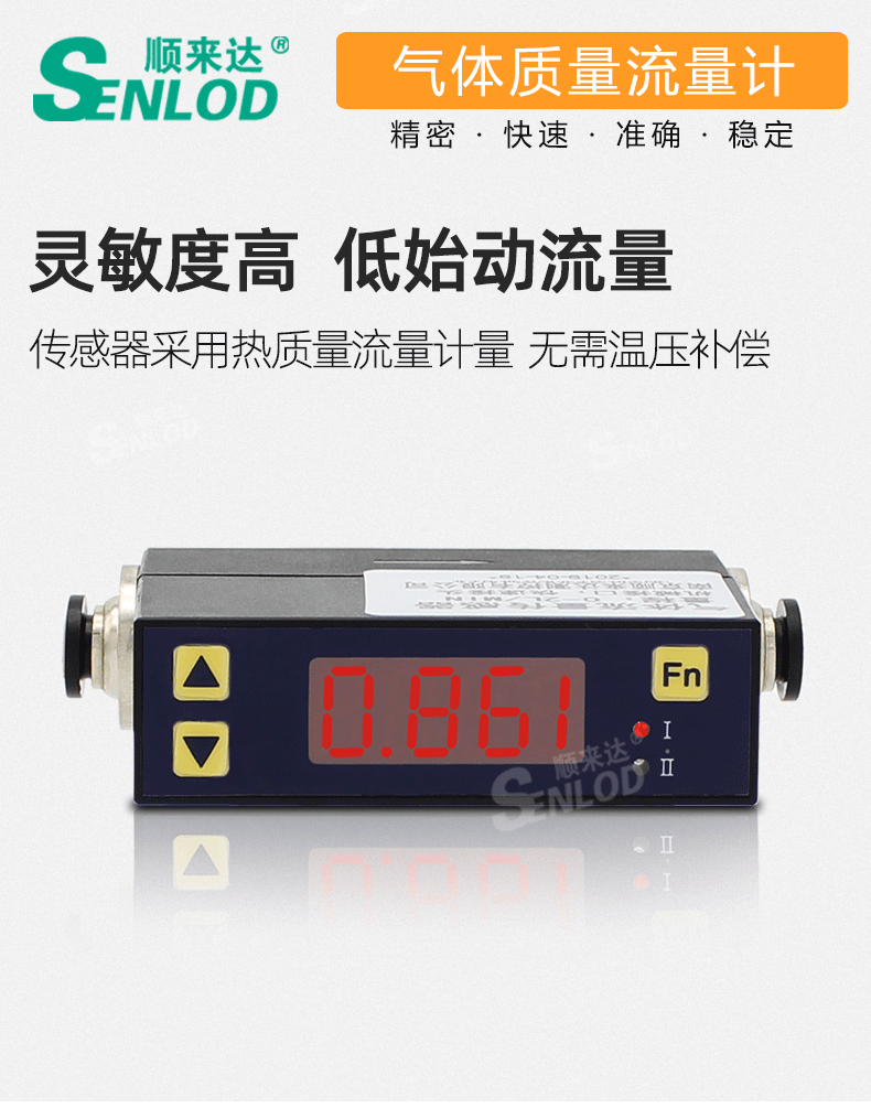 SENLOD/顺来达的流量计Senlod*低流速气体流量计微小流量数字气体流量计MF4003MF4008量程:50L/min8mm快速接头