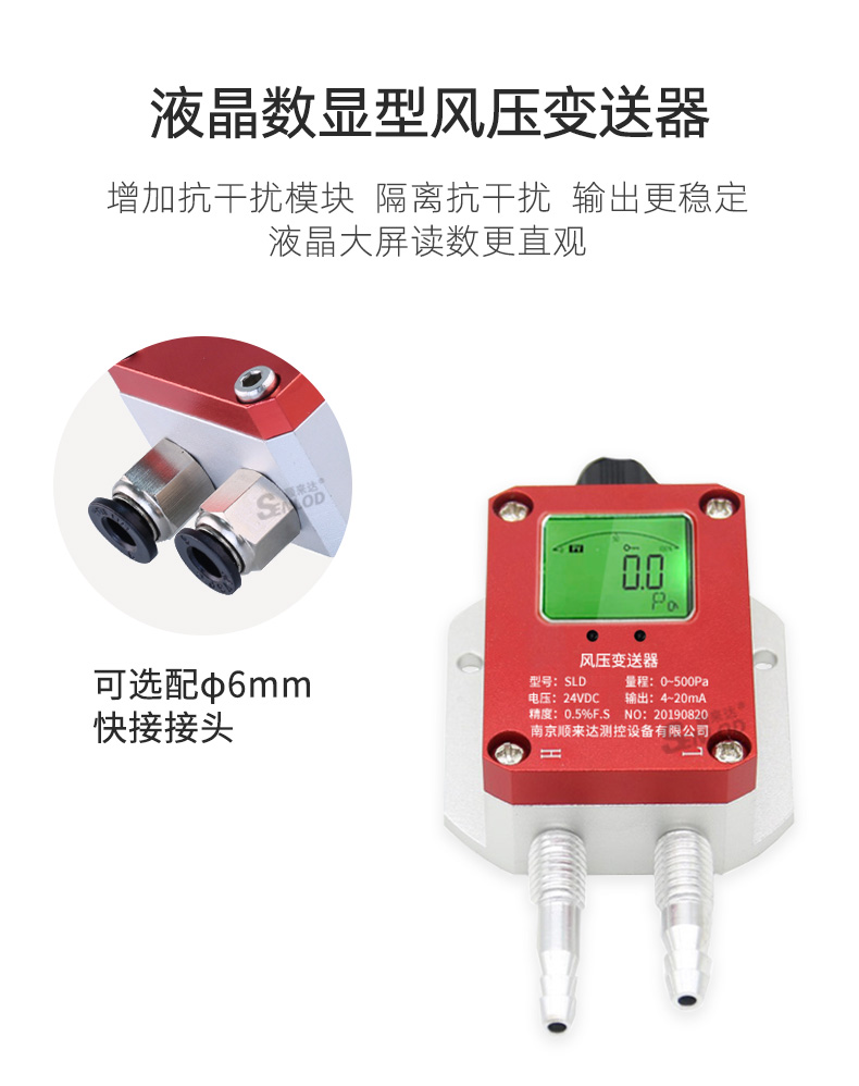 顺来达风压变送器传感器数显微压差传感器 风管压力差压计4-20ma/RS485 【加项】【液晶数显型】具体量程下单备注 |