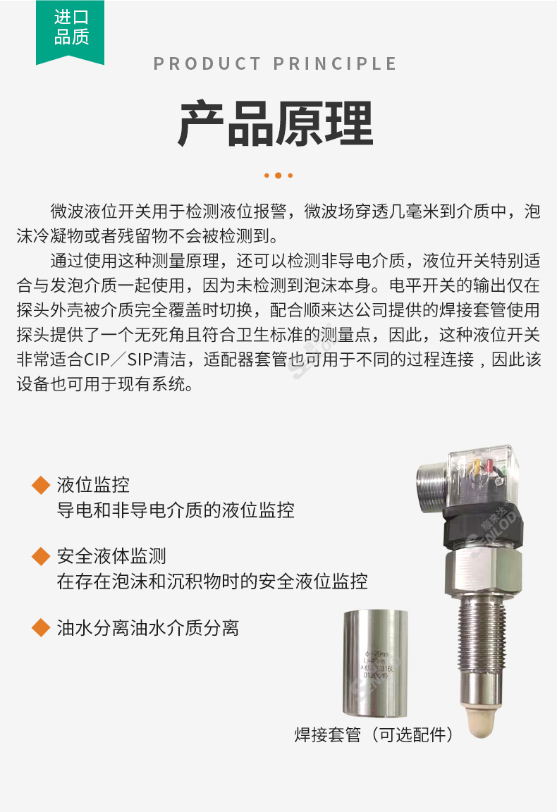 艾逊订货号:F1078450 原始型号:顺来达 微波物位开关粘稠料位开关油水位界面固体物料粉尘开关报警控制器 卫生卡盘型 品牌:SENLOD/顺来达 品牌所属地:中国