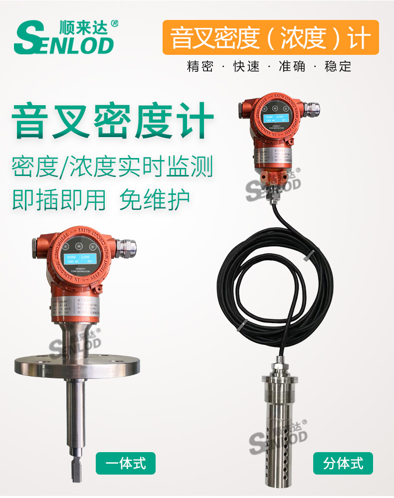 SENLOD/顺来达的在线密度计顺来达音叉密度计在线密度计脱硫浆液比重计液体酒精浓度测试仪音叉浓度计音叉密度计配316L不锈钢叉体