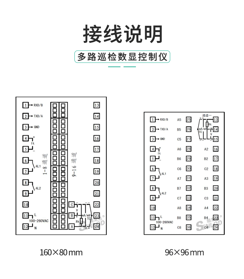 SENLOD/顺来达的压力控制器顺来达智能温度巡检仪数显8路16路多路巡检仪压力报警控制器RS485【选装】加装1路报警
