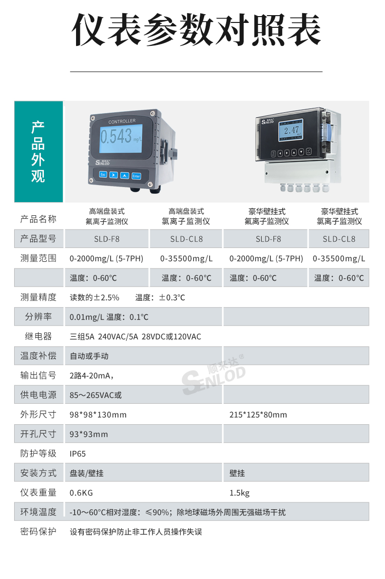SENLOD/顺来达的气体浓度变送器.传感器顺来达在线水溶液氯离子氟离子监测仪检测仪水质在线钙离子传感器控制器豪华壁挂式+氯离子电极