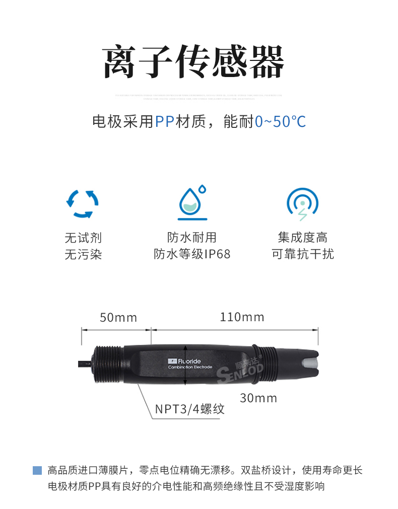 艾逊订货号:K1024851 原始型号:顺来达在线水溶液氯离子氟离子监测仪检测仪水质在线钙离子传感器控制器 豪华壁挂式+氯离子电极 品牌:SENLOD/顺来达 品牌所属地:中国