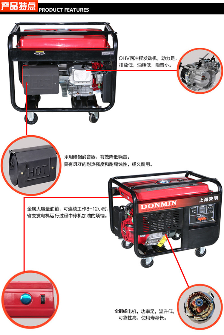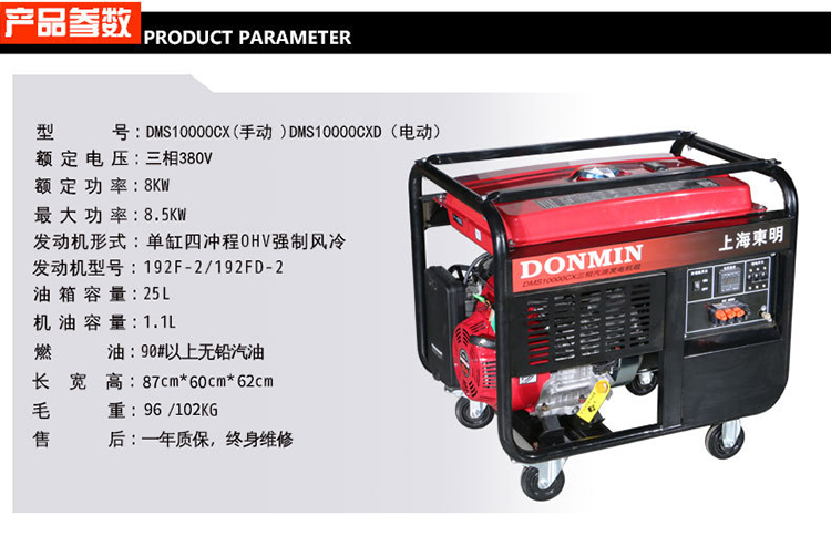 DONMIN的汽油发电机DONMIN东明DMS10000CX8kw三相汽油发电机组户外小型汽油发电机移动便携发电机手动启动定做