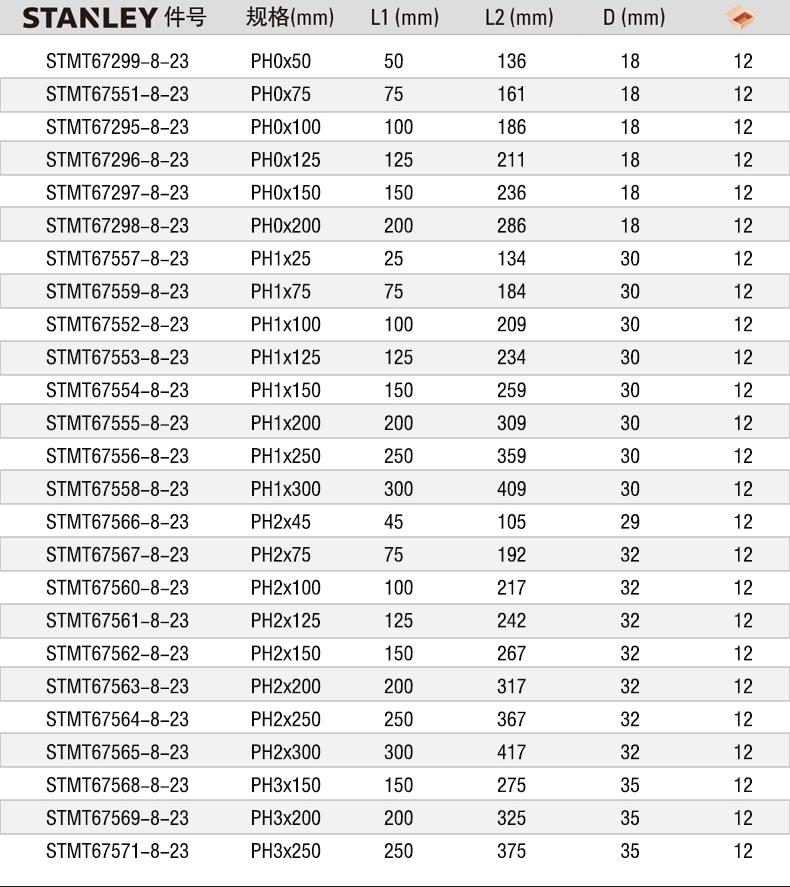 STANLEY/史丹利的螺丝刀STANLEY/史丹利强力型十字螺丝批STMT67299-8-23PH0×50mm1支