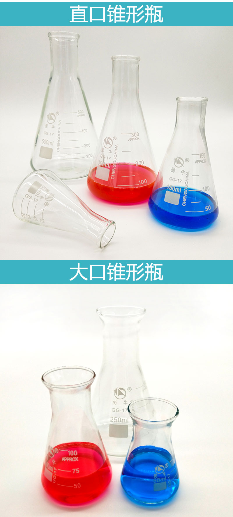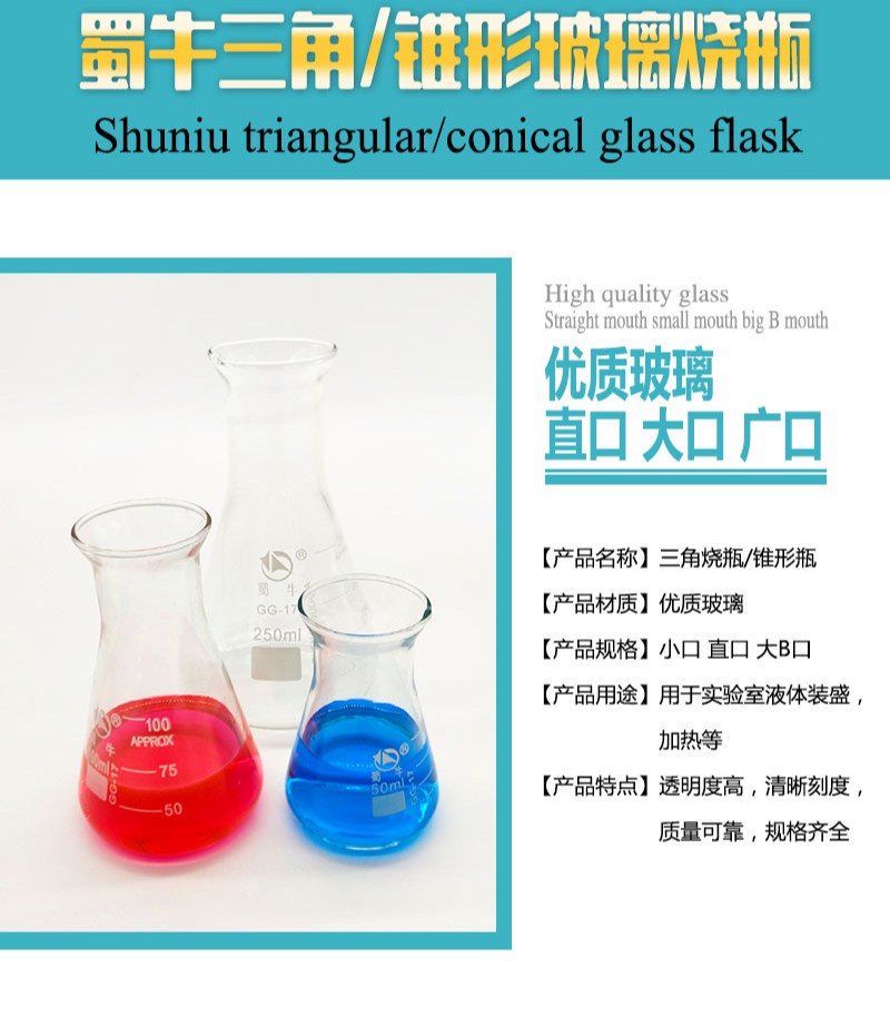SHUNIU/蜀牛的化学品分装瓶蜀牛三角烧瓶玻璃锥形瓶直口小口1002505001000小口/直口250ml1个