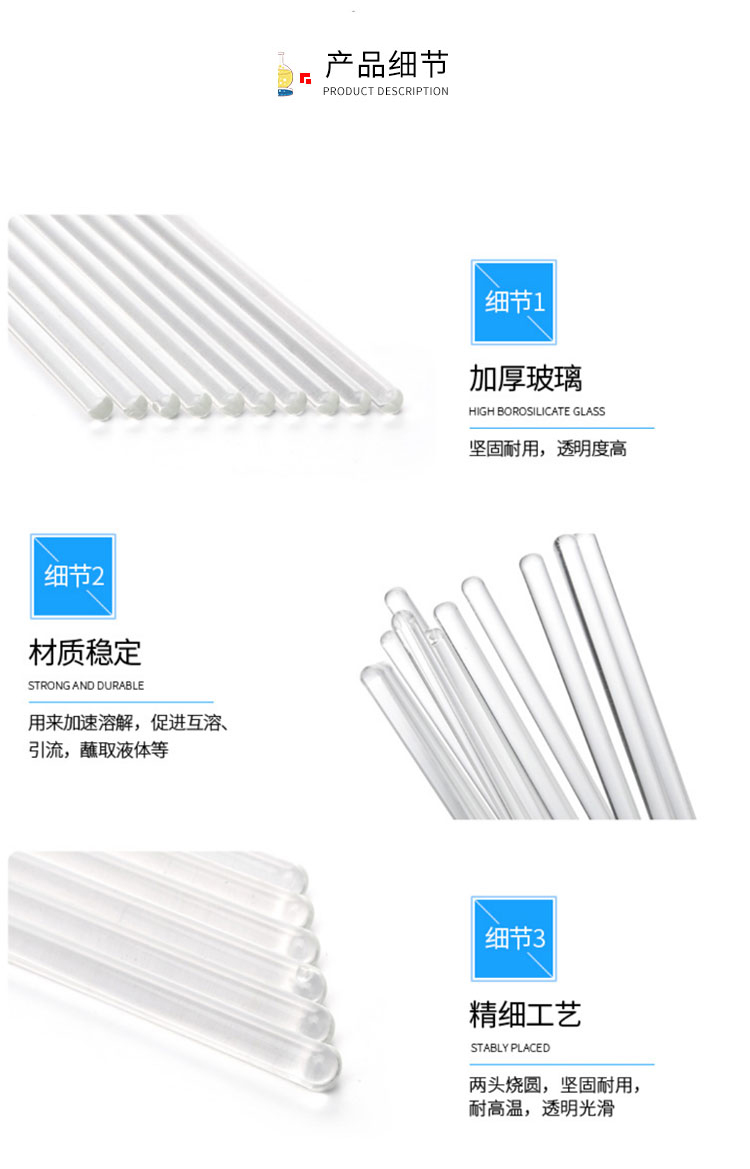 LEIGU/垒固的化学品分装工具LEIGU/垒固高硼硅玻璃棒B-0403065×200mm1包