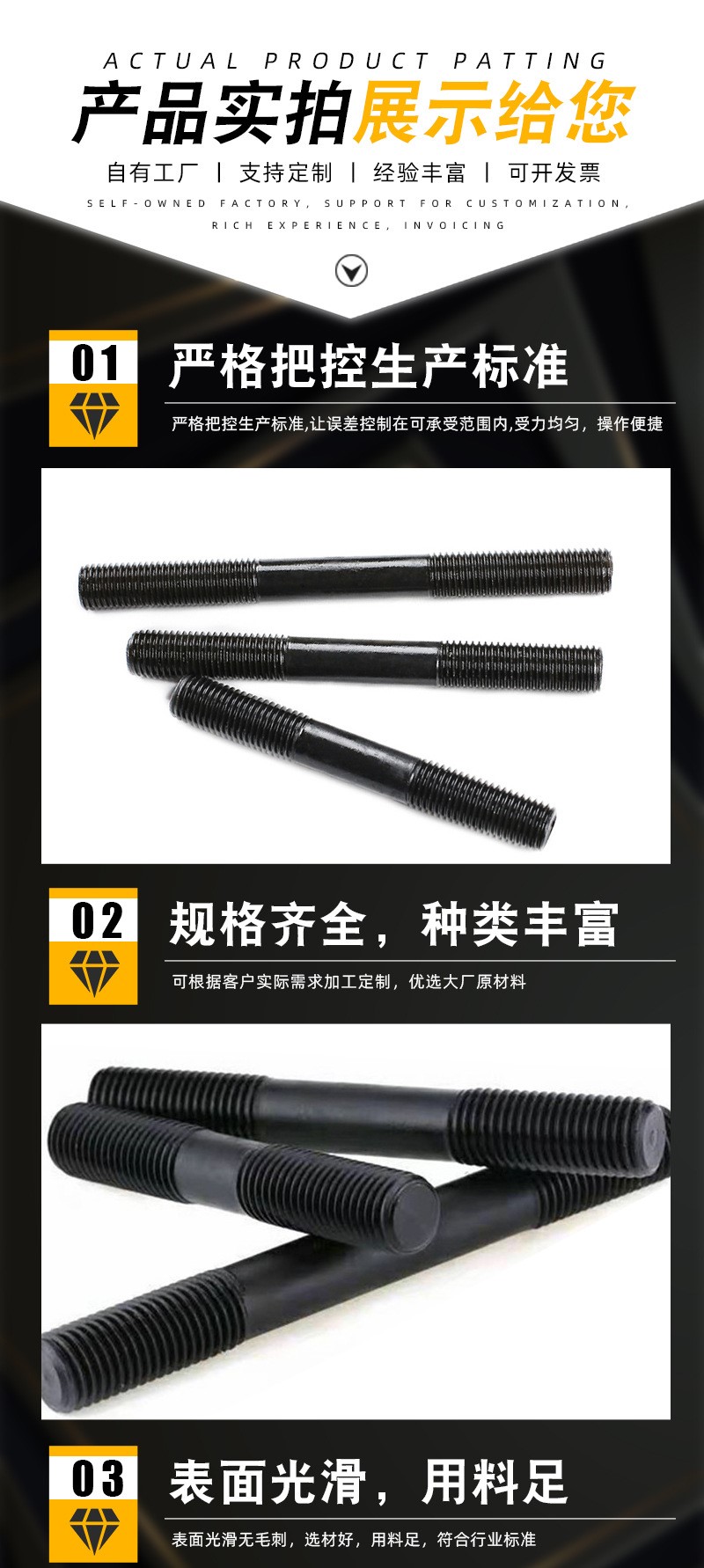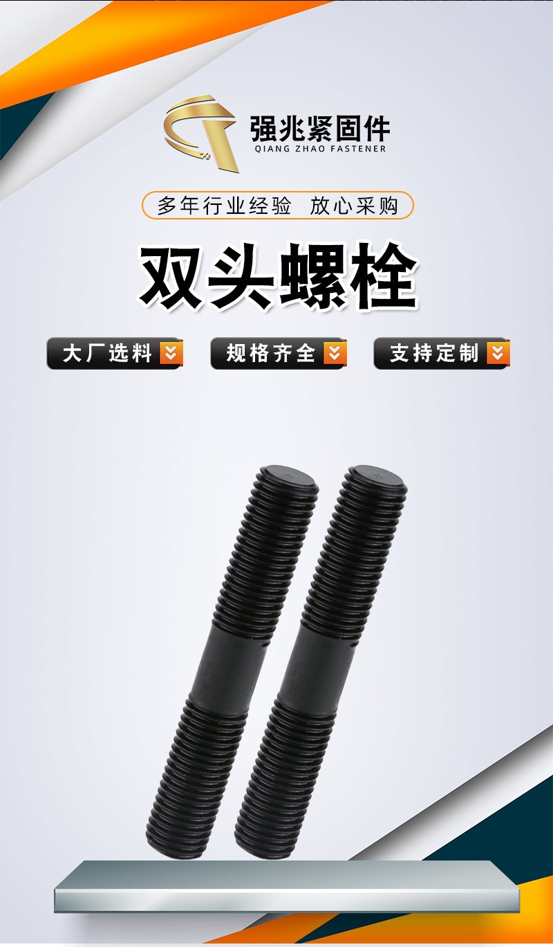 强达螺丝 的双头螺栓供应双头螺栓碳钢双头螺栓双牙螺杆螺柱氧化发黑双头螺柱M10*80