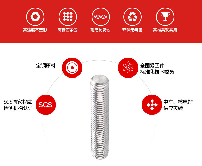 HG标准全螺纹螺柱,M6-1.0*60,不锈钢304/A2,50支/包 |