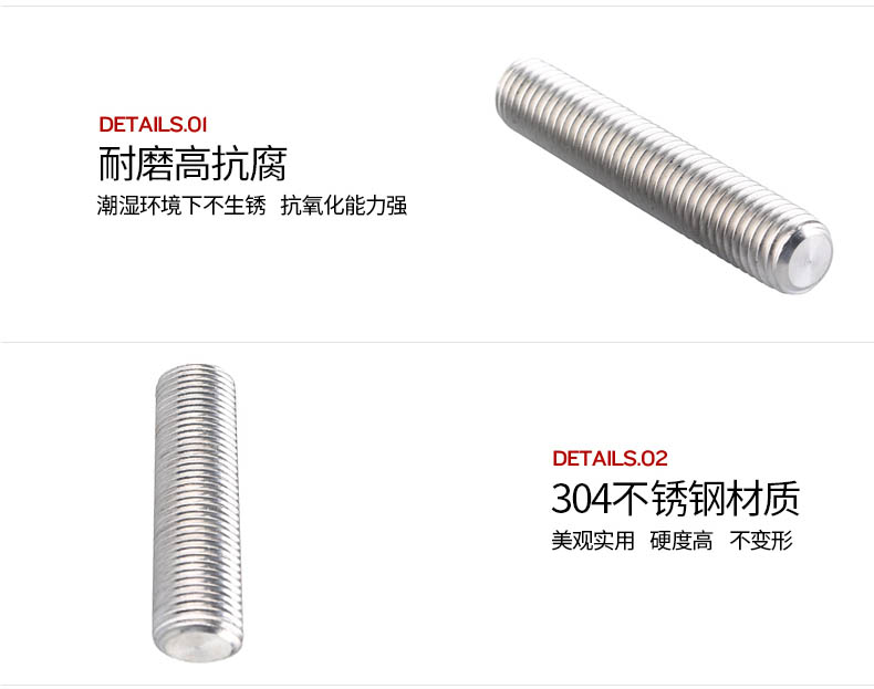 HG标准全螺纹螺柱,M8-1.25*80,不锈钢304/A2,50支/包 |