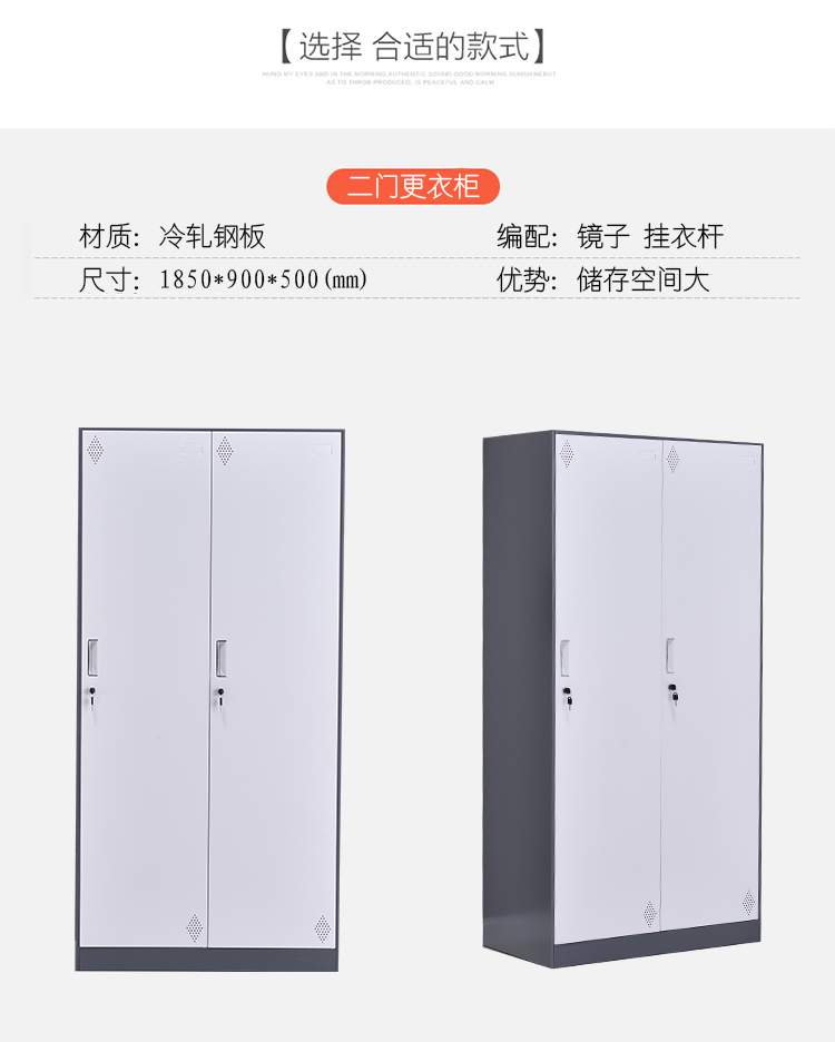 洛来宝的更衣柜洛来宝钢制彩色更衣内物柜员工储物柜鞋寄存包柜带锁铁皮灰白套色浴室拆装薄边柜二门更衣