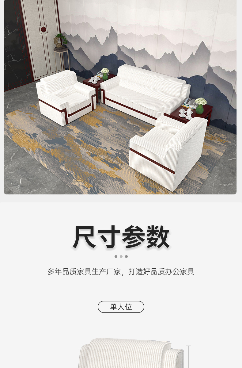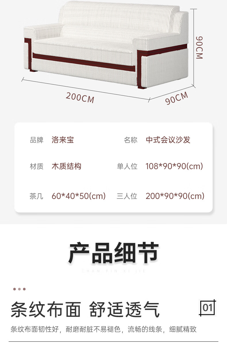 洛来宝 办公沙发现代简约办公室会客接待沙发实木扶手商务洽谈木沙发 三人位 |
