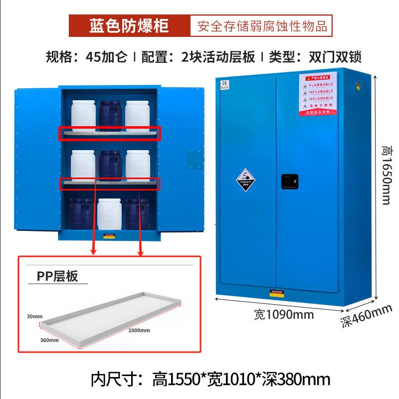 耐酸碱防爆试剂柜 PP层板 165CM*109CM*46CM(高*长*宽) |
