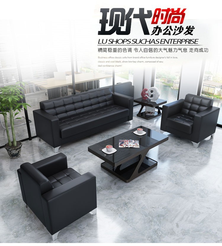 洛来宝 办公沙发茶几组合商务简约钢架三人沙发办公家具接待洽谈会客沙发 3+1+1 |