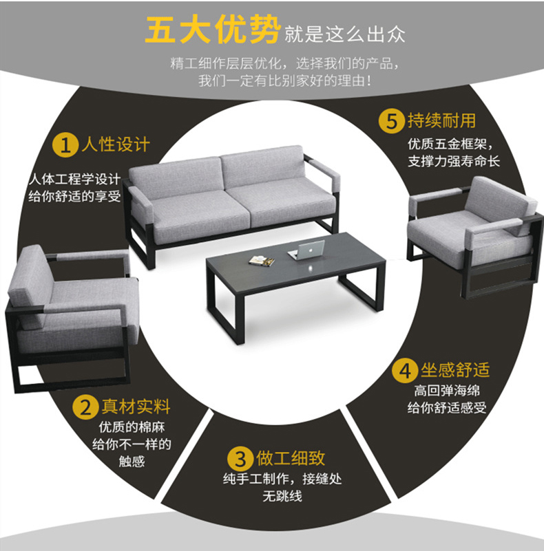 艾逊订货号:K1025752 原始型号:洛来宝办公沙发现代简约布艺沙发商务会客洽谈沙发办公室沙发茶几组合 3+1+1+长几 品牌:洛来宝 品牌所属地:中国