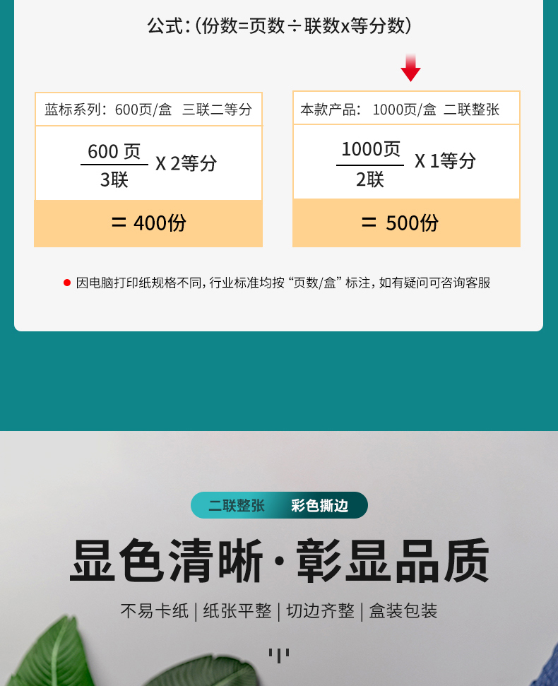 得力(deli)珊瑚海打印纸 二联三等分针式打印纸 可撕边电脑打印纸 彩色(白红)送货单 1000页/箱241-2-1/3CS |