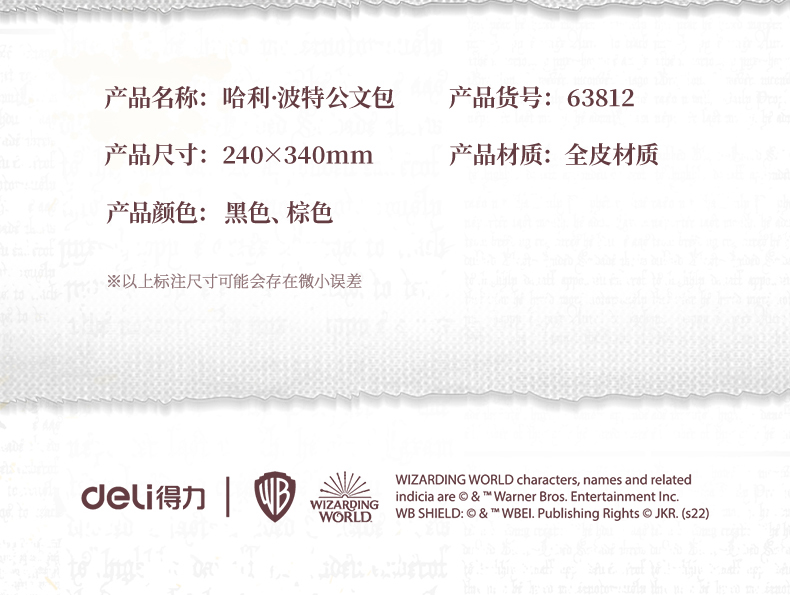 艾逊订货号:K1026193 原始型号:得力(deli)哈利·波特联名棕色公文包 皮质商务会议包文件包电脑包手提包 63812棕色 品牌:deli/得力 品牌所属地:中国