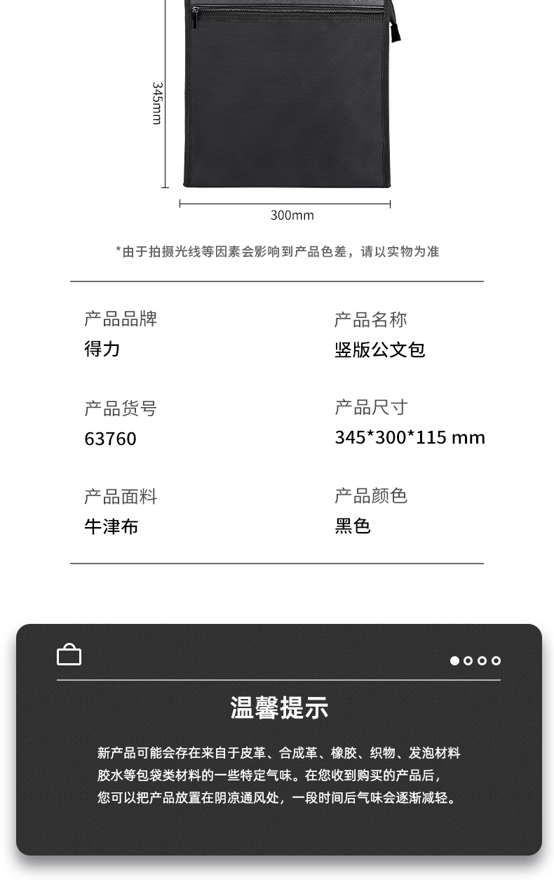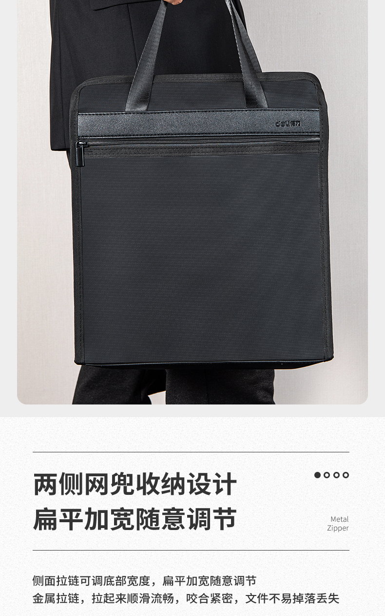 艾逊订货号:K1026197 原始型号:得力(deli)加厚竖式立体办公手提袋/会议包/事务包/文件包/商务拉链袋电脑公文包 黑色63760 便携 品牌:deli/得力 品牌所属地:中国